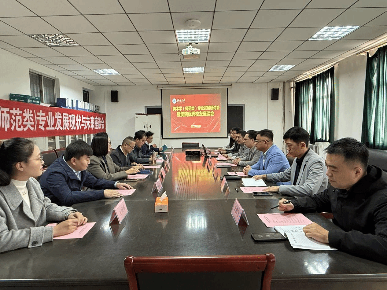 于4教601会议室召开美术学(师范)专业发展研讨会暨优秀校友座谈会。来自各行各业的优秀校友代表重返母校,与学院领导、教师代表齐聚一堂,共忆青春岁月,共商美术学(师范)专业发展大计,为校庆注入了浓厚的学术氛围与情感温度。