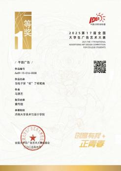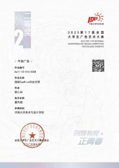 董传超老师指导,马源艺创作的作品《当电子屏“装”了纸笔魂》荣获国赛一等奖;由董传超老师指导,邵心如创作的作品《超能SupNice自由无限》荣获国赛二等奖;由刘东涛老师指导,周欣瑶、陈麓清创作的作品《彩境无界》获国赛优秀奖,充分展现学院学子扎实的专业功底与面向真实命题的创新表达能力。