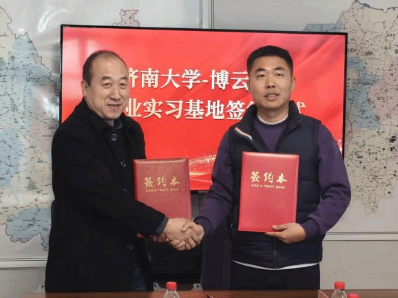 座谈结束后,陈春锋与杨猛共同为济南大学就业实习基地揭牌,董俊杰与杨猛签署《济南大学毕业生就业实习基地》协议。会后,杨猛陪同一行参观了企业生产车间,详细介绍了企业项目运营、设备应用和发展情况。