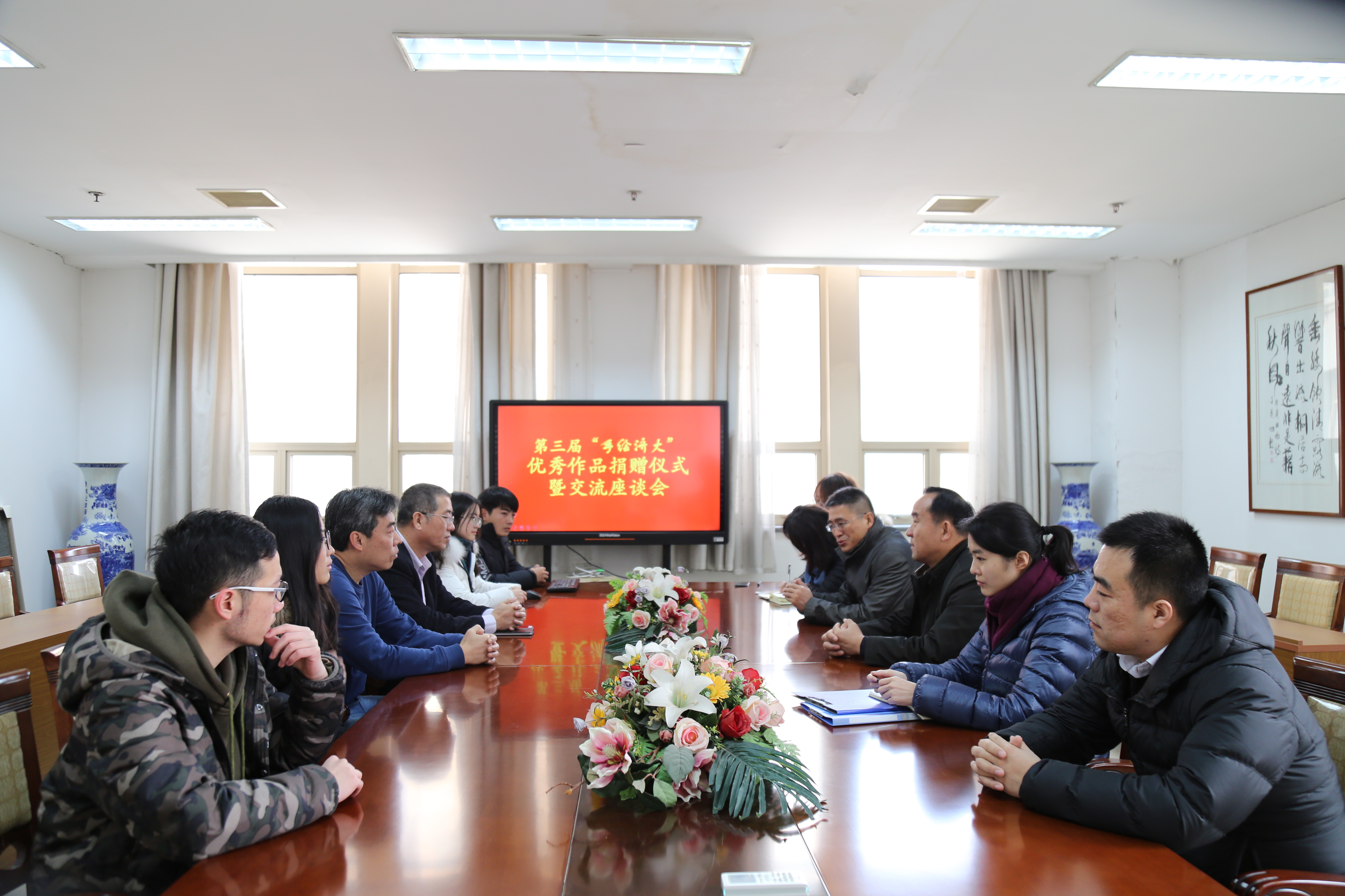12月11日上午,美术学院第三届“手绘济大”优秀作品捐赠仪式暨交流座谈会在图书馆会议室召开。图书馆党委书记高志刚、办公室主任刘强、美术学院党委书记夏卫东、副书记刘军、学办老师们及“手绘济大”获奖学生代表参加了此次座谈会。