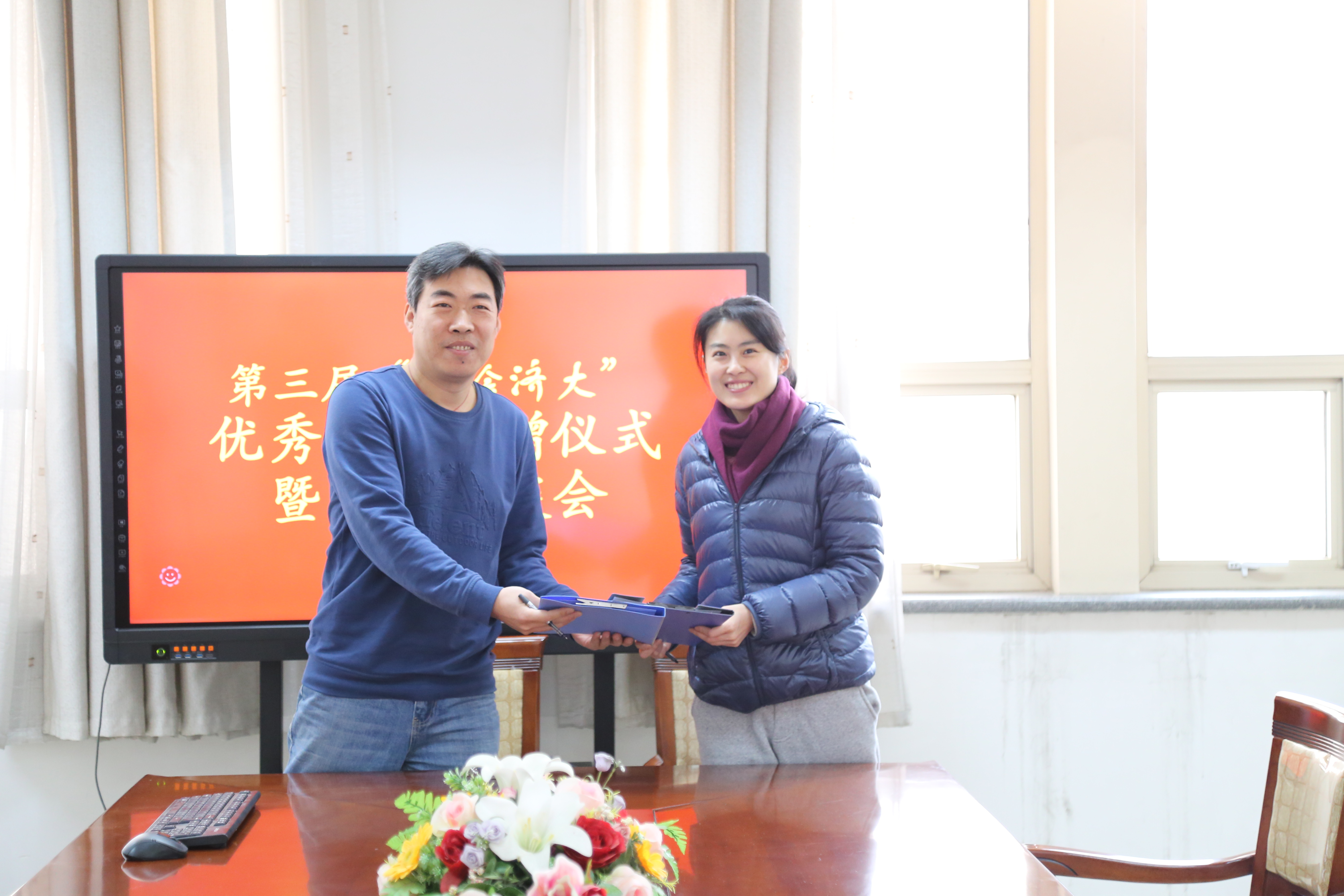 图书馆办公室主任刘强与美术学院团委书记信苏珊共同签署了“手绘济大”获奖作品捐赠收藏协议书。