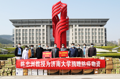 4月7日,美术学院院长陈忠洲向学校捐赠防疫物资,助力学校疫情防控工作。刘宗明副校长,党委宣传部、后勤管理与基建处、合作发展处(教育发展基金会办公室)、校医院、美术学院等相关负责同志出席捐赠仪式。捐赠仪式严格按照济南大学防疫要求,采取校内校外无接触方式分别进行。