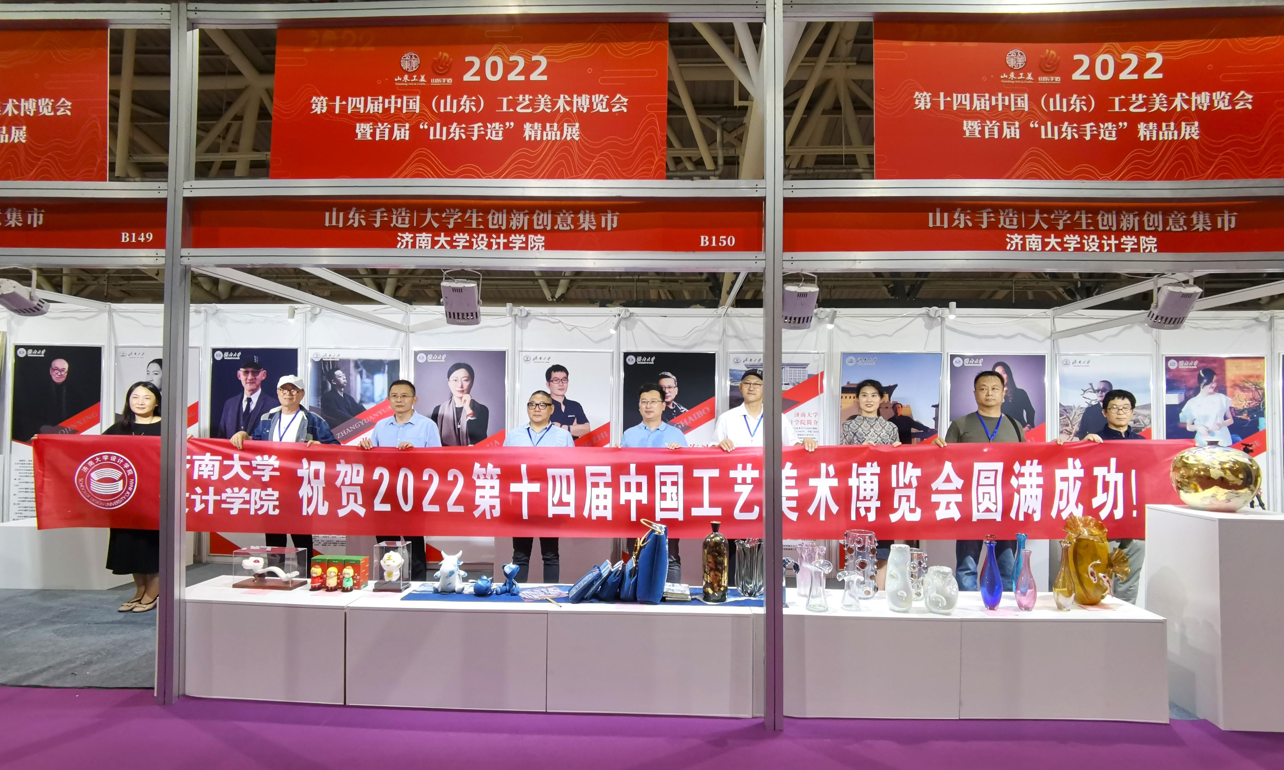 由中共山东省委宣传部、山东省工业和信息化厅、山东省文化和旅游厅、山东省商务厅指导,中国工艺美术协会、山东省轻工联社等单位支持,山东省工艺美术协会、山东省工艺美术学会、山东省工艺美术研究所共同主办的2022第十四届中国(山东)工艺美术博览会暨首届“山东手造”精品展于7月29日至8月1日在济南舜耕国际会展中心盛大举办。济南大学设计学院参加了此次博览会,是参展山东高校中展位面积最大、作品数量最多、种类最全的高校,并获总成绩第一名。